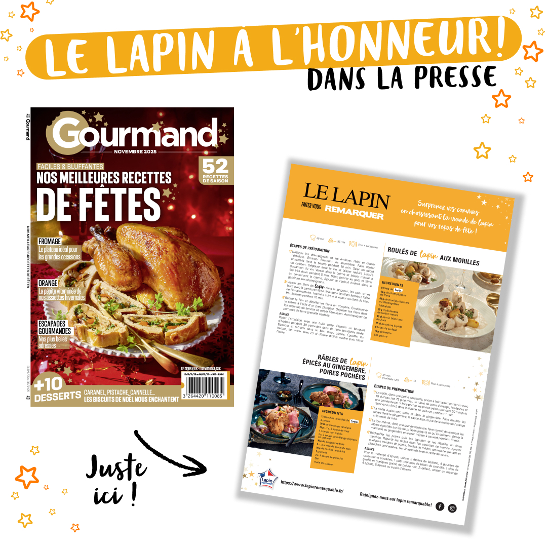 Retrouvez nos recettes festives à base de viande de lapin dans le numéro spécial recettes de fêtes du magazine Gourmand !